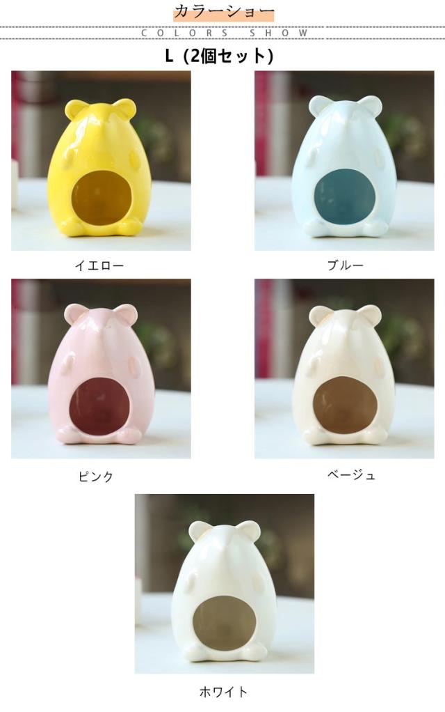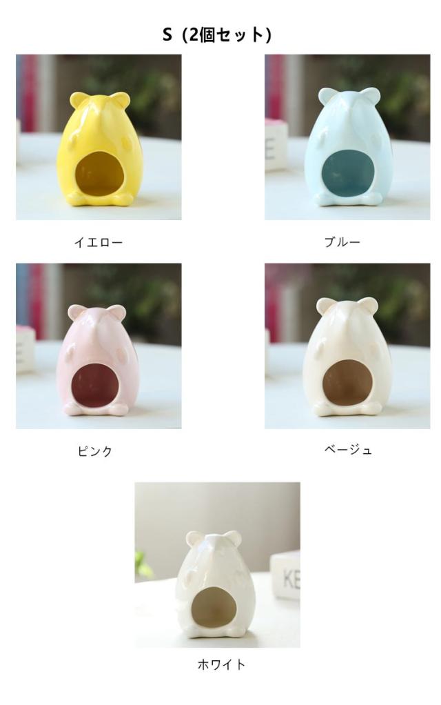 | 涼しいひんやり 陶器ペットハウス S/Lサイズ 2個セット 狭い場所が大好きなハムちゃんたちも大満足のカワイイおうち! 小さなペットたちは光のあたらない、暗いところを好みますよね。 このハムスターデザインのおへやは、そんな小動物たちが安心できる寝床になりますよ。落ち着ける隠れ家があれば、ペット達は大喜び! 夏の暑さ対策もバッチリ! 暑さに弱いハムスターたち。このおうちが適度な日陰となり、良い日よけになります。陶器製なのでヒンヤリ涼しく快適。 まるまる洗えてお手入れも簡単!いつも清潔な状態を保てます。砂浴びの場所としても使えます。 何もしなくても、写真を映えさせてくれるペットグッズ! 数ある小動物用ハウスの中でも、見た目の可愛らしさがダントツな商品です。 このハウスと愛らしいペットたちの写真がSNSでは話題に!愛するペットに是非、カワイイおうちをプレゼントしてあげてくださいね。 ※陶器の性質上、製造工程時に細かいキズや凸凹、汚れが残る場合がございます。恐れ入りますが予めご了承ください。 | |