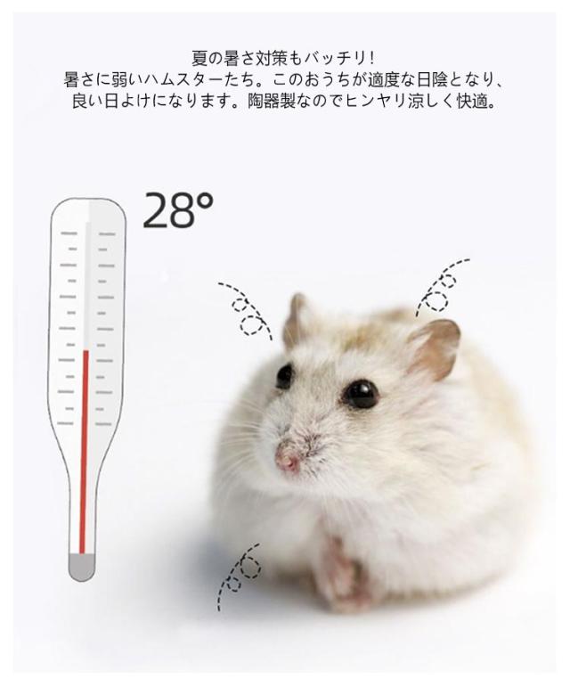 | 涼しいひんやり 陶器ペットハウス 2個セット 狭い場所が大好きなハムちゃんたちも大満足のカワイイおうち! 小さなペットたちは光のあたらない、暗いところを好みますよね。 このハムスターデザインのおへやは、そんな小動物たちが安心できる寝床になりますよ。落ち着ける隠れ家があれば、ペット達は大喜び! 夏の暑さ対策もバッチリ! 暑さに弱いハムスターたち。このおうちが適度な日陰となり、良い日よけになります。陶器製なのでヒンヤリ涼しく快適。 まるまる洗えてお手入れも簡単!いつも清潔な状態を保てます。砂浴びの場所としても使えます。 何もしなくても、写真を映えさせてくれるペットグッズ! 数ある小動物用ハウスの中でも、見た目の可愛らしさがダントツな商品です。 このハウスと愛らしいペットたちの写真がSNSでは話題に!愛するペットに是非、カワイイおうちをプレゼントしてあげてくださいね。 ※陶器の性質上、製造工程時に細かいキズや凸凹、汚れが残る場合がございます。恐れ入りますが予めご了承ください。 | |