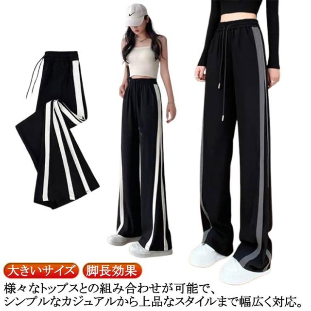 薄手 下 スウェット レディース ロングパンツ サイドライン カジュアルパンツ 通気性 ワイドパンツ 送料無料 ゆったり ストレートパンツ ヨガ スウェットパンツ 大きいサイズ フィットネス 脚長効果 トレーニング 薄手 アウトドア スポーツ ジャージ