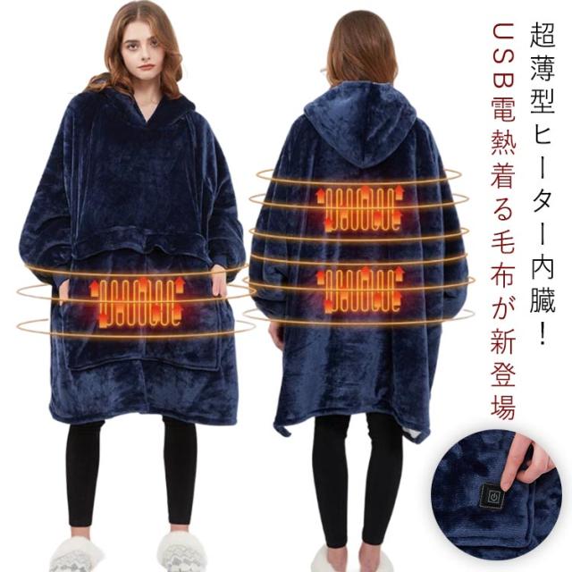 着る毛布 電気毛布 冬用 ルームウェア パーカー レディース メンズ もこもこ 冬用 USB加熱 電熱毛布 長袖 毛布 帽子付き 丸洗い ひざ掛け 掛け敷き 着るブランケット 部屋着 ナイトウェア 着る 節電 着るコタツ 一人用 電気ひざ掛け毛布 ブランケット ホットマット