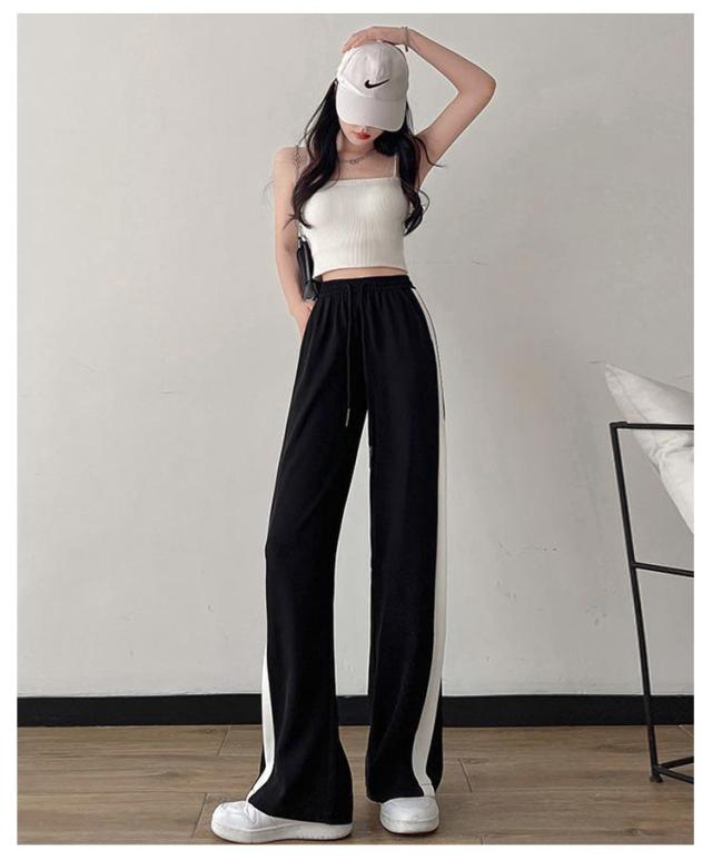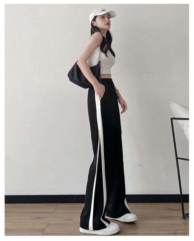 下 ガチョウパンツ レディース ワイドパンツ スウェット スウェットパンツ ゆったり 薄手 ロングパンツ ヨガ サイドライン 送料無料 大きいサイズ 通気性 ストレートパンツ 薄手 脚長効果 トレーニング フィットネス アウトドア スポーツ ジャージ