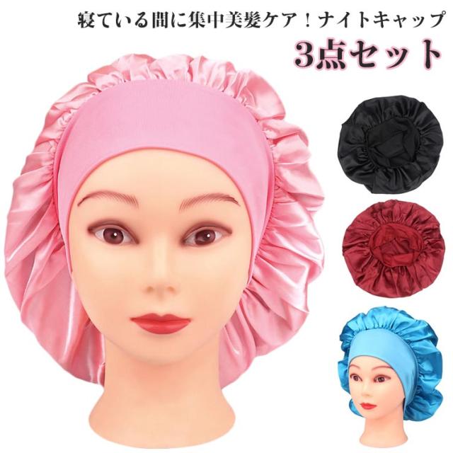 キャップ 3点セット ヘアキャップ 送料無料 ショート ロング ロングヘア パサつき予防 ミディアム ナイトキャップ 幅広ゴム ヘアケア ツヤ髪 おうち時間 保湿 帽子 美髪 就寝用 睡眠 お休み バレンタインデー プレゼント