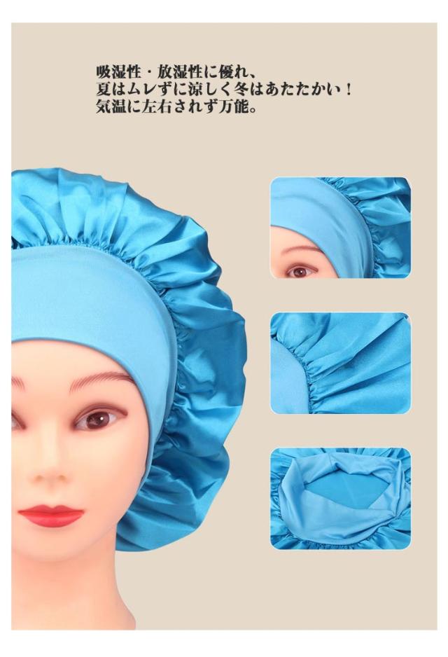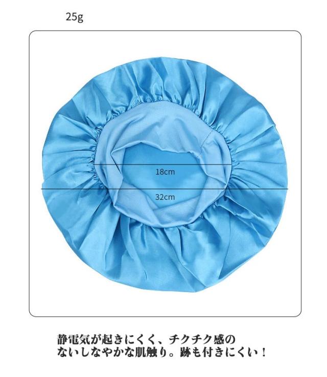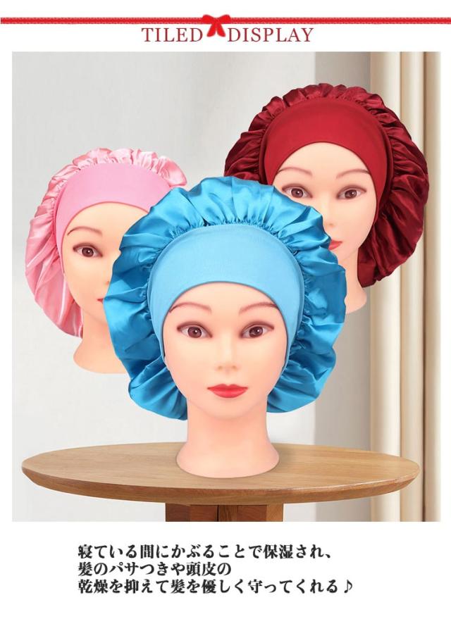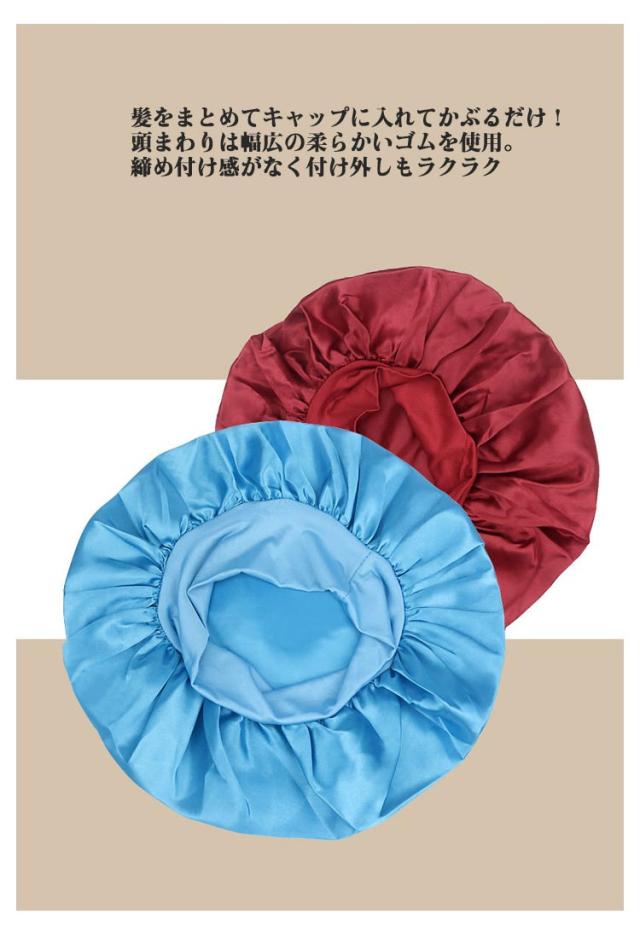 | 寝ている間にかぶるだけ!簡単ヘアケア話題のナイトキャップ♪ ただかぶって眠るだけ!朝起きたとき髪をツルツル・すべすべにしてくれる驚きのアイテム。 柔らかでリッチな肌ざわりと保温性、吸湿性に優れた素材で美髪、美肌効果バッチリ! 被って寝れば朝起きても髪がパサつかずサラサラ。 寝癖も防止できて、朝のスタイリング楽々♪ ゴムでホールドするので、横向きになってもズレにくい。 髪の保湿や寝ぐせ対策に◎枕との摩擦による髪のダメージ防止に♪ ロングヘア、ミディアムヘア、ショートヘアの方でも使いやすい大きさなので、幅広い髪型で着用可能! | |