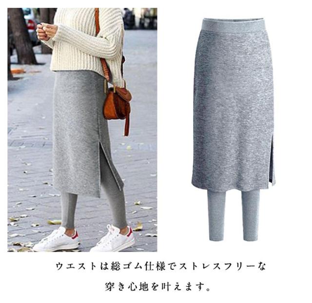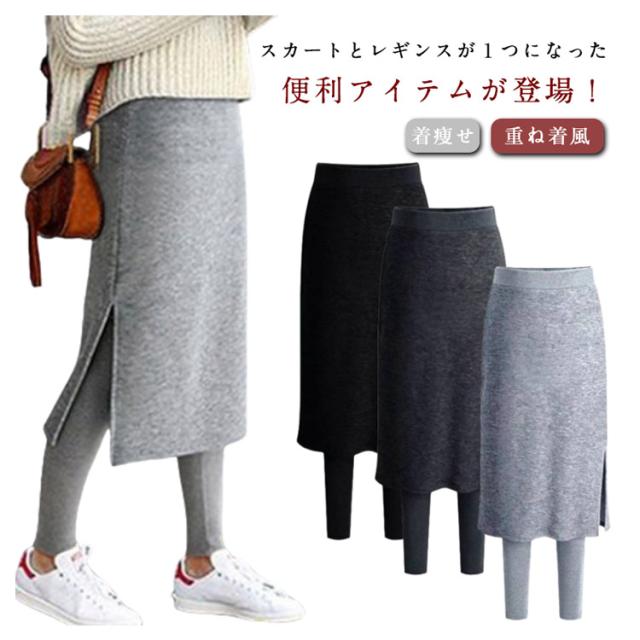 ロングスカート 重ね着風 タイトカート レディース 無地 スカート付きレギンス マタニティ レギパン レギンス レギンスパンツ ウエストゴム 防寒 暖かい