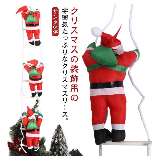 クリスマス 飾り クリスマスツリー飾り サンタクロース人形 (サンタ3体) はしごサンタクロース サンタはしご ドアの装飾 クリスマスパーティー吊り装飾用 プレゼント ギフト ドアオーナメント ドアの装飾 吊り装飾用 子供 雰囲気 パーティー 吊り 飾り付け 贈り物 プレゼント