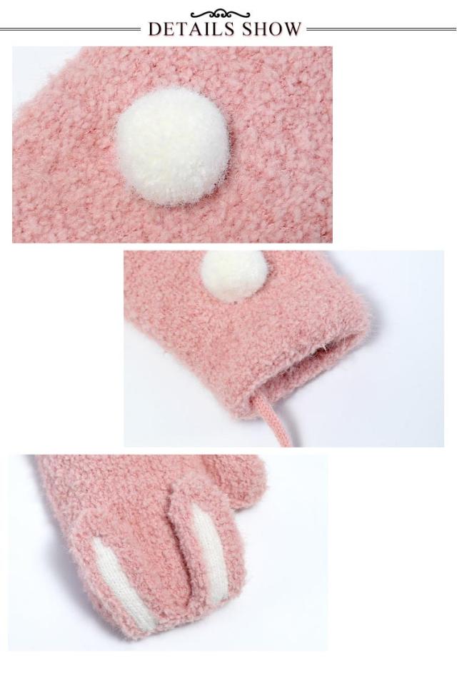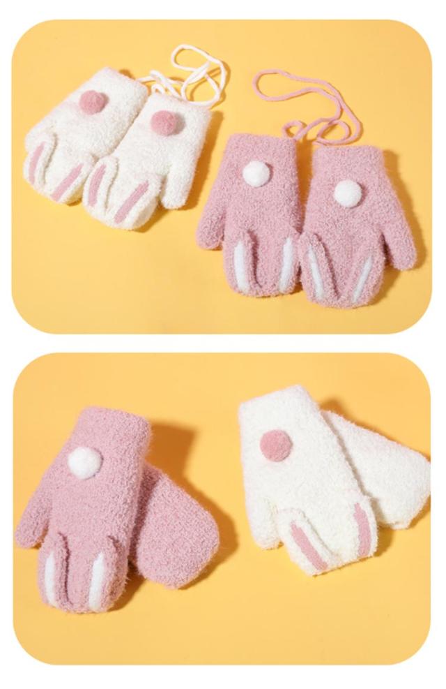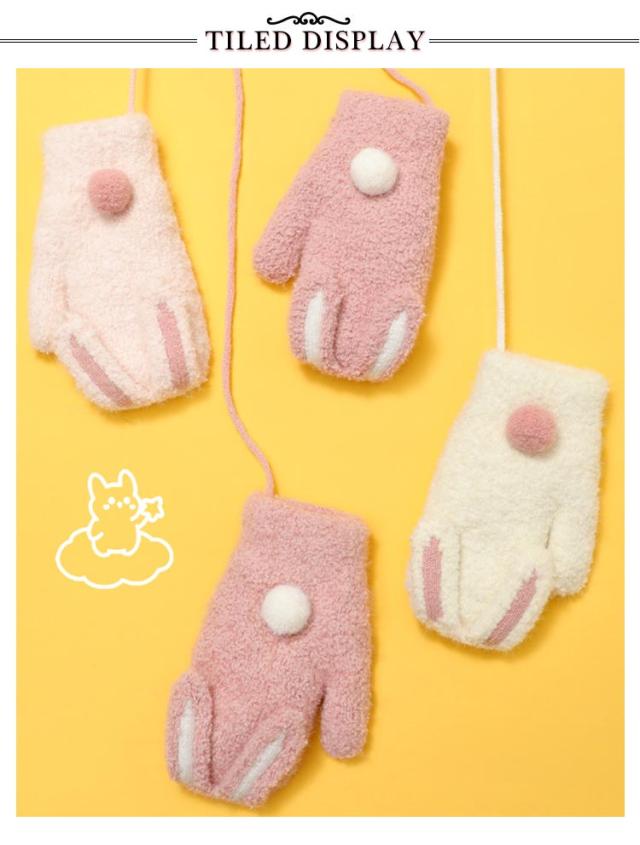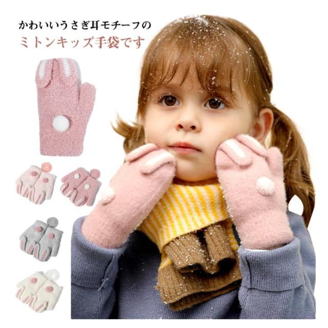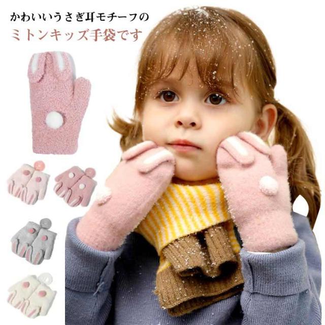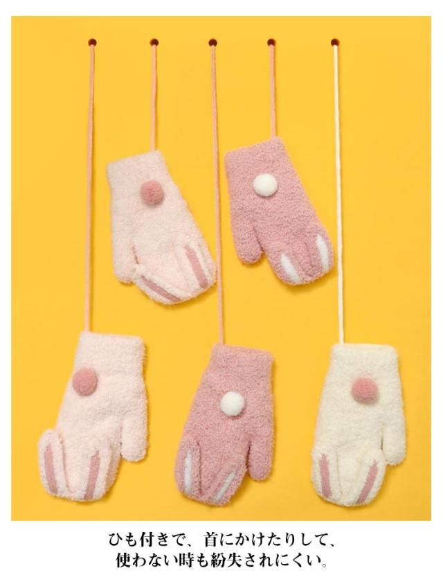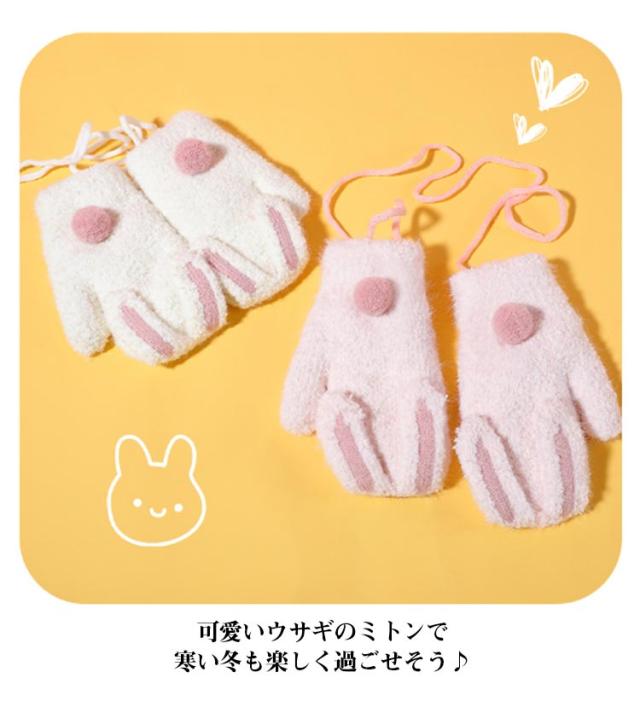 送料無料 うさ耳が可愛い 手袋 ミトン キッズ てぶくろ 指なし 裏起毛 ミトングローブ ふわふわ 防寒 防風 ハンドウォーマー ニットグローブ ぬいぐるみ ひも付き 男の子 女の子 男児 女児 通園 通学