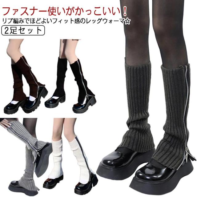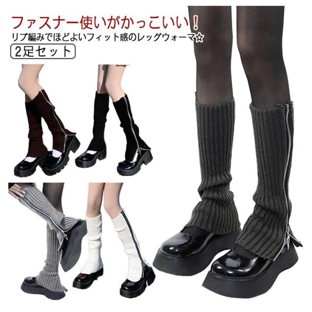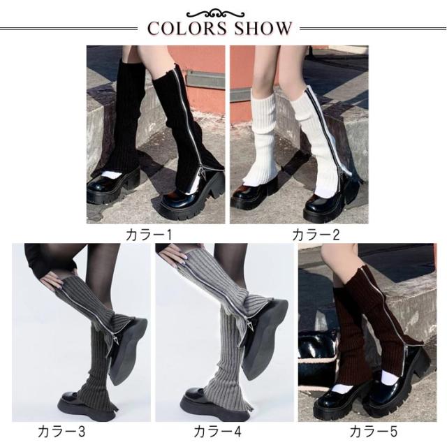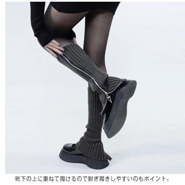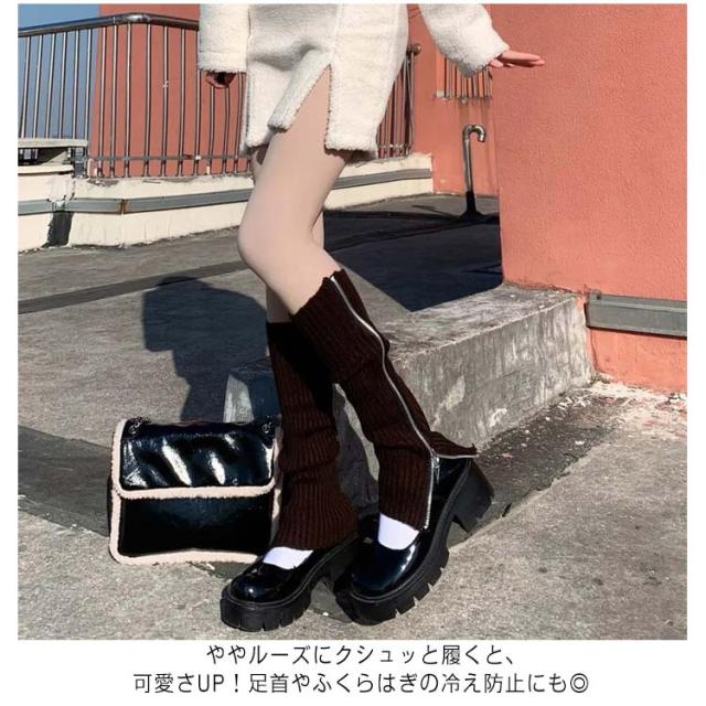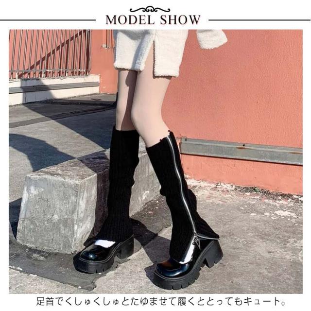 レディース レッグウォーマー ジップ ファスナー 足首ウォーマー リブニット 靴下 足元 ロング丈 ミディアム丈 防寒 くしゅくしゅ ぽかぽか あったか 冷え取り 送料無料 冬 秋 ルーズソックス 寒さ対策 おしゃれ コスチューム