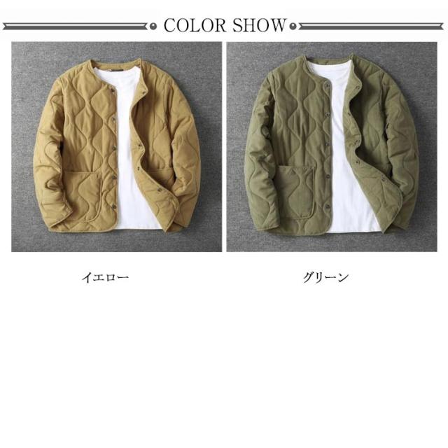 ノーカラー ジャケット ノーカラージャケット コート アウター ブルゾン 羽織り キルティングジャケット 中綿 キルティングコート メンズ ミリタリー 長袖 カジュアル ゆったり ライナージャケット ライトアウター 防寒 保温 春 秋 冬
