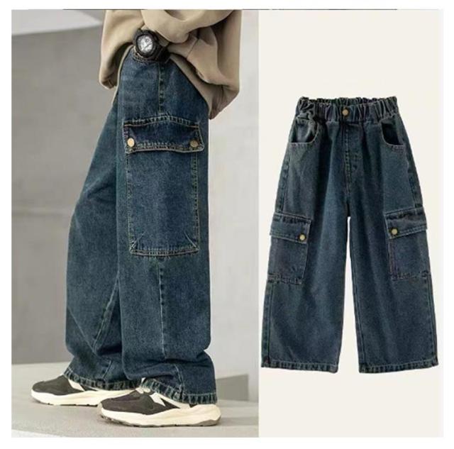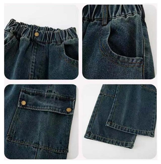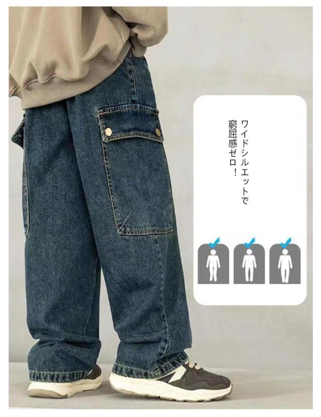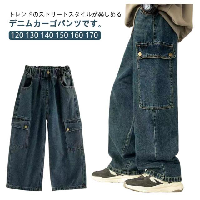 子供服 デニムカーゴパンツ 150 キッズ 女の子 130 子ども ジュニア 長ズボン ワイドパンツ 男の子 デニムパンツ ボトムス ロングパンツ 140 おしゃれ 160 170 デニムカーゴパンツ かわいい 120 こども ジーンズ 無地 春 秋 冬 ストリート 通園