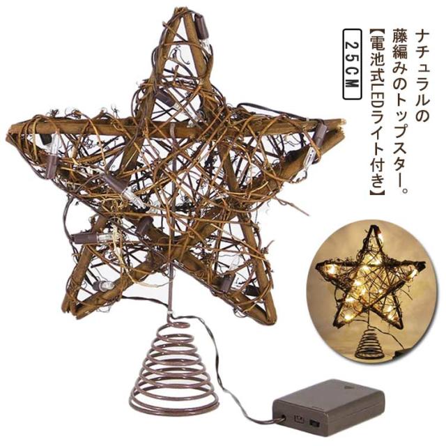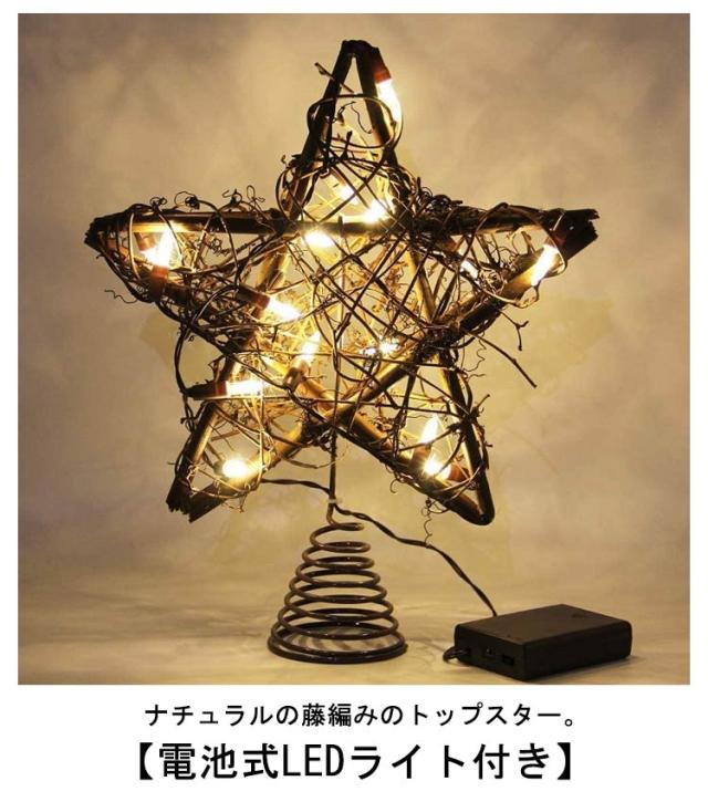 星 トップスター 木製 おしゃれ クリスマスツリー LEDライト付き 飾り スター クリスマス 飾り付け 五角星 北欧 オーナメント ツリー キラキラ 電池式 藤編み 木製 ナチュラル トップスター クリスマスツリーライト