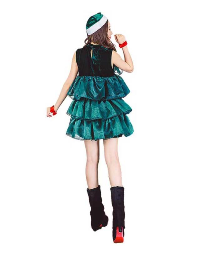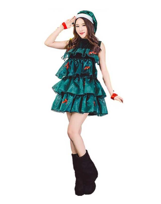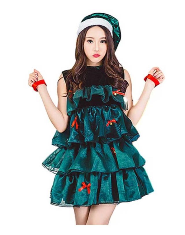 ツリー クリスマスツリー ワンピース ノースリーブ クリスマス クリスマスツリー 帽子付き 仮装 4点セット 可愛い レディース ふわふわ セクシー ドレス コスチューム コスプレ衣装 サンタ コスプレ クリスマスコスプレ パーティ仮装 イベント 演出 宴会