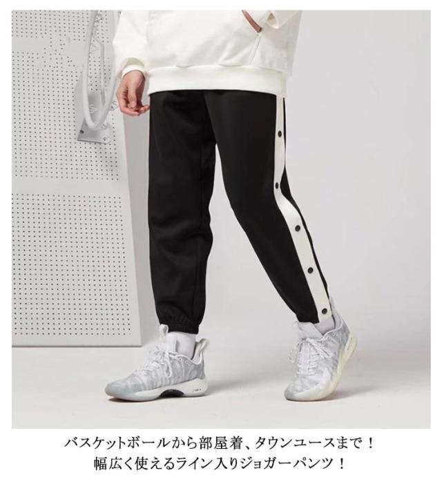 | 定番のバスケットボールジャージロングパンツ! スナップボタン付きで着替えもラクラク! バスケットボールから部屋着、タウンユースまで!幅広く使えるライン入りジョガーパンツ! | |