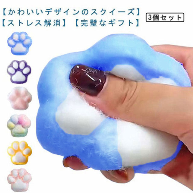 猫 スクイーズ玩具 ふわふわ 3個セット 感覚おもちゃ おもちゃ 猫の足 ソフト ストレス解消 低反発 かわいい 猫の爪 大きな肉球 握る玩具 3個セット 子供 大人 ギフト 動物 猫の爪 癒し クリスマス