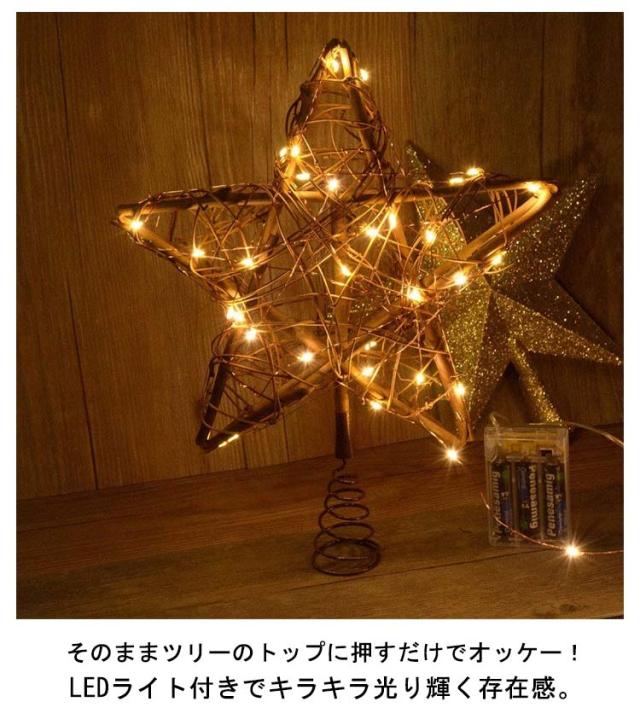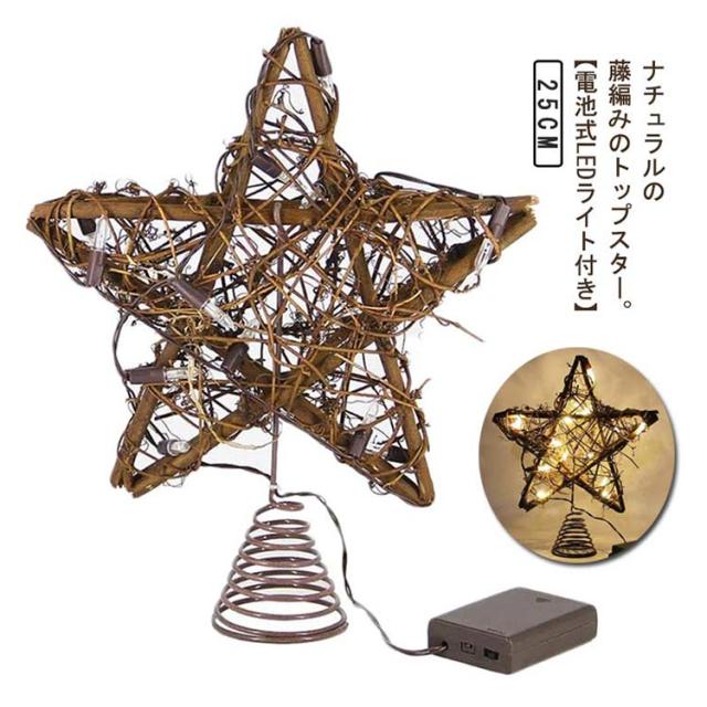 キラキラ トップスター クリスマスツリー 星 ツリー LEDライト付き 飾り 北欧 飾り付け スター 五角星 木製 おしゃれ 木製 オーナメント 電池式 藤編み 木製 ナチュラル トップスター クリスマスツリーライト