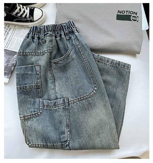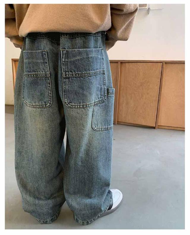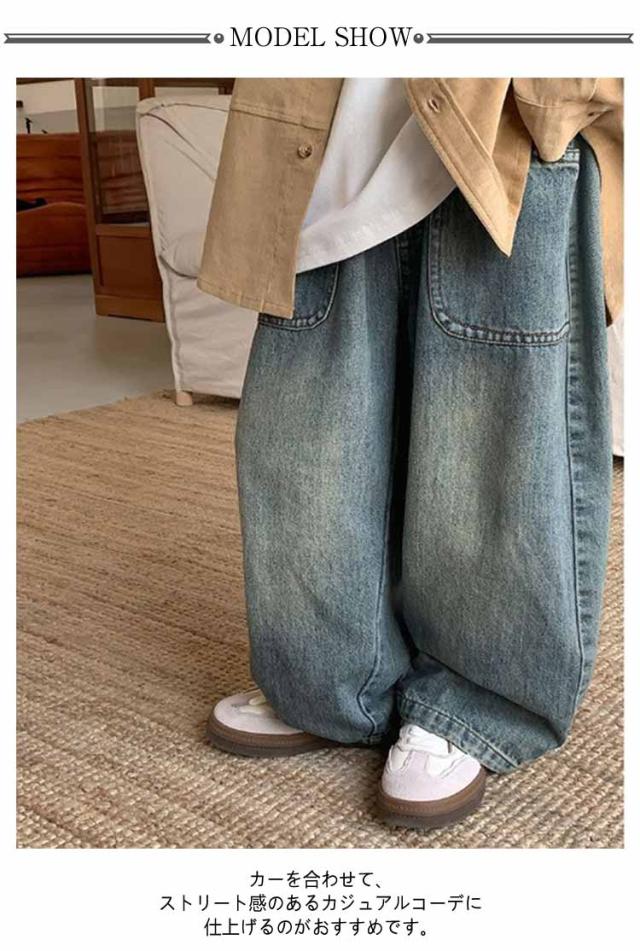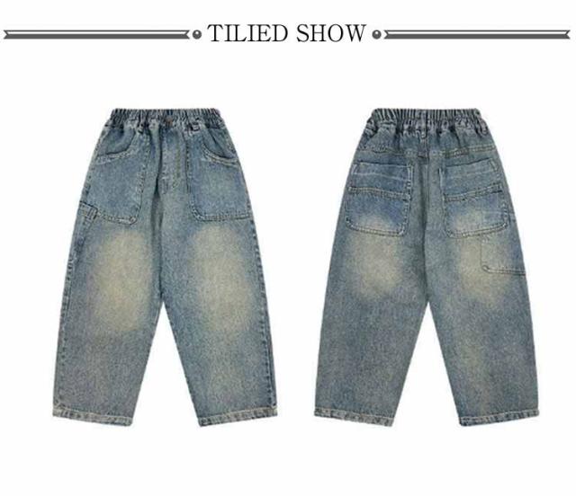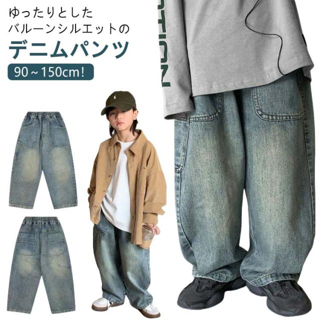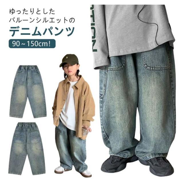 女の子 ゆったり デニム おしゃれ 男の子 ジーンズ バルーンパンツ デニムパンツ ルーズ ワイドパンツ デニムパンツ ストリート ジュニア キッズ ジーパン ロングパンツ ユニセックス ウエストゴム こども 子ども服 子供服 カジュアル 90 100 110 ボトムス 130 140