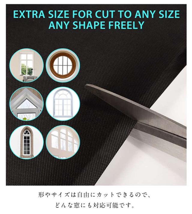 | 昼夜逆転の方、光に敏感な方の部屋に最適な窓ガラス目隠しシートです。 99%以上の紫外線を効果的に遮断できる高品質遮熱コーティングを採用し、素晴らしい遮光性と断熱性を備えて、睡眠の質も向上します。 簡単に貼り付けるだけで、昼間でもまるで夜のように真っ暗に!大切なプライバシーをきちんと守ってくれます。 取り付けはとても簡単です!マジックテープを使って、シートを窓枠に貼るだけで完了。 目隠し効果も抜群で、窓に貼るだけでお宅の大切なプライバシーをきちんと守ってくれます。 形やサイズは自由にカットできるので、どんな窓にも対応可能です。 日差しを遮るだけでなく、夏は涼しく、冬は暖かくなります。 | |