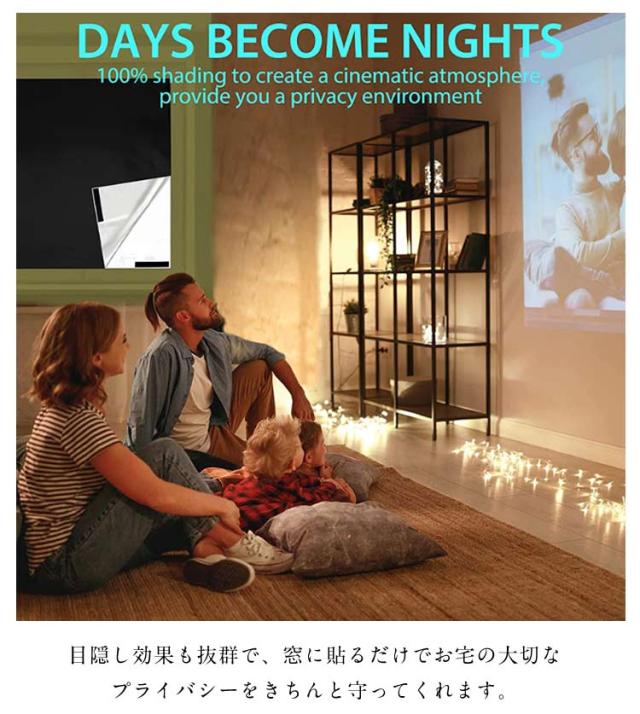 遮光シート 完全遮光 100%遮光 完全目隠し 剥がせる 日よけシート 目隠しシート 窓ガラス 遮光フィルム 遮熱 UVカット 紫外線カット 繰り返し使える 貼付簡単 寝室 浴室 お風呂 プライバシー対策 西日対策 熱中症対策 カットOK 送料無料