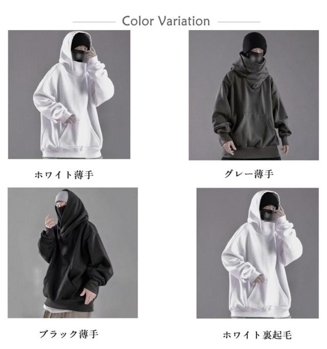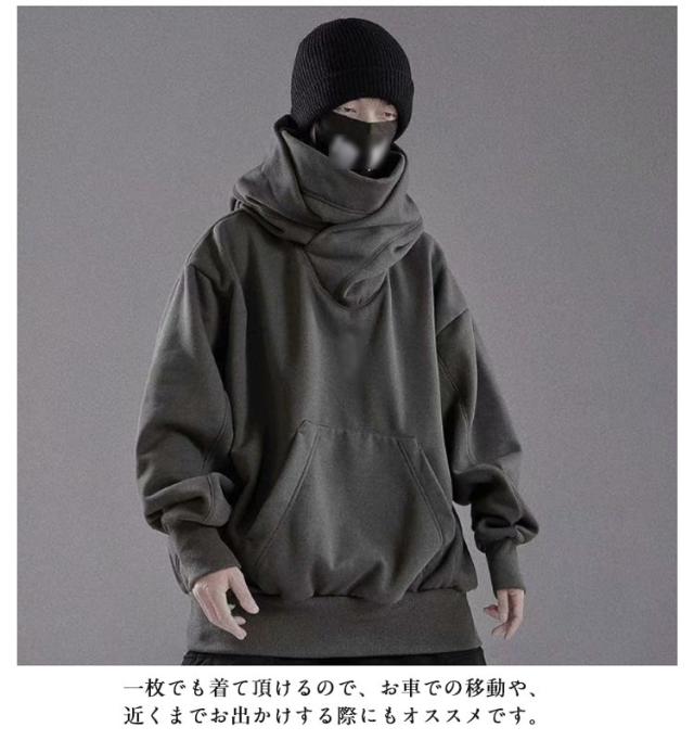 | ボリュームネックパーカー。男女兼用!裏起毛と薄手2タイプが選べる! このフード付きスパーカーを着て街を歩けば、とても安心感があります!大きなフードと二重のハイネックで顔を隠せるので、街中でも誰にも気づかれません。 大きめのフードとハイネック仕立てでボリュームを持たせ、さり気ないアクセントに。 ワイドパンツやフレアパンツに合わせて頂き、ロングコートやMA-1に組み合わせて頂くのがオススメです。 一枚でも着て頂けるので、お車での移動や、近くまでお出かけする際にもオススメです。 | |