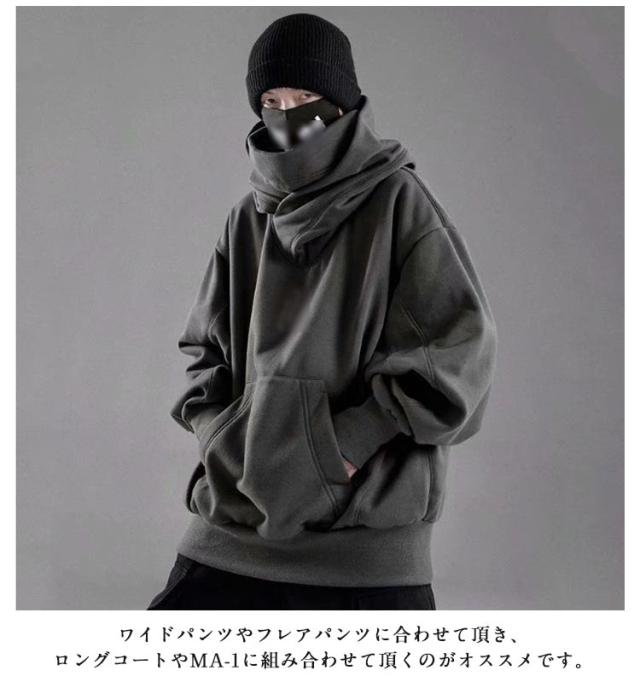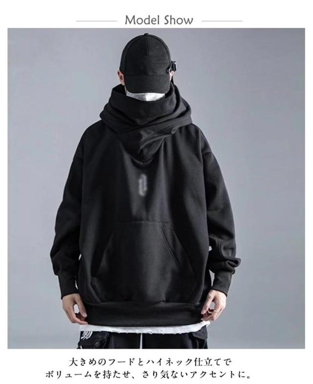 メンズ 長袖 スウェット 裏起毛 男女兼用 パーカー ボリュームネックパーカー プルオーバーパーカー フード付きパーカー 薄手 無地 カップル ハイネックパーカー おしゃれ 大きいサイズ ストリート系 ゆったり レディース ヒップホップ お兄系 個性的 モード系