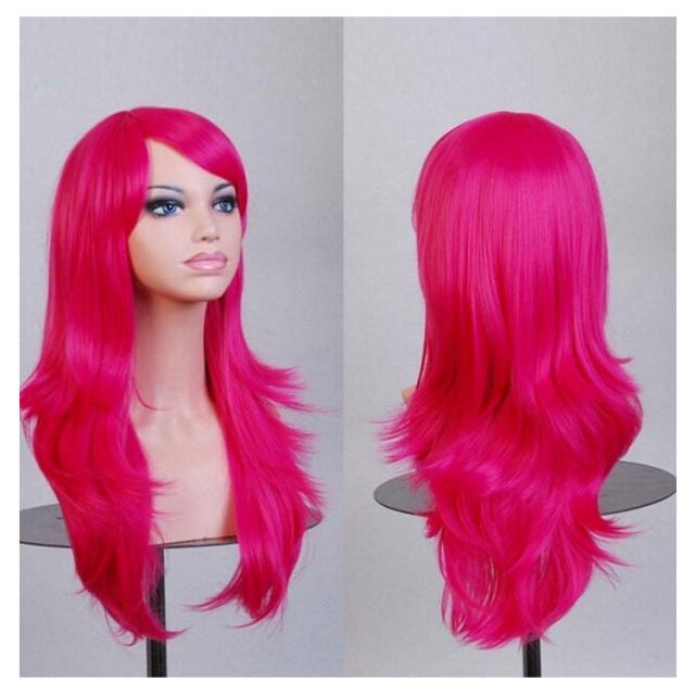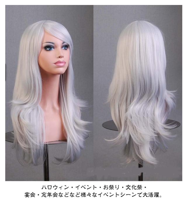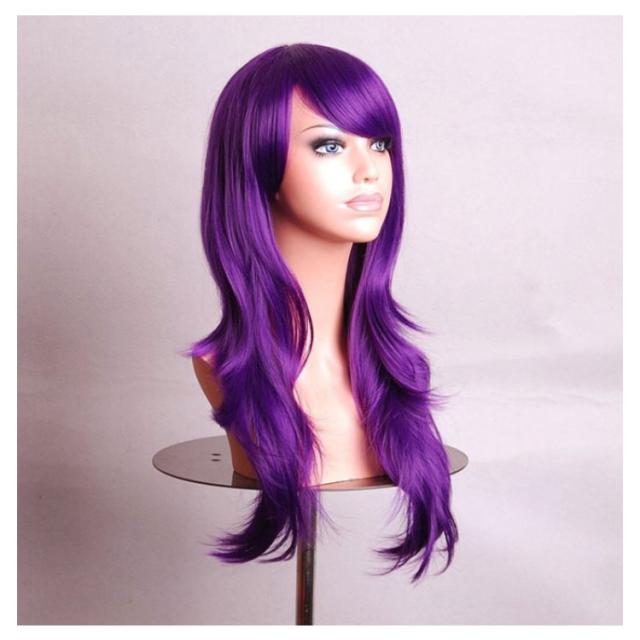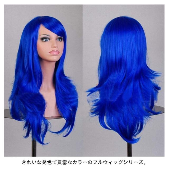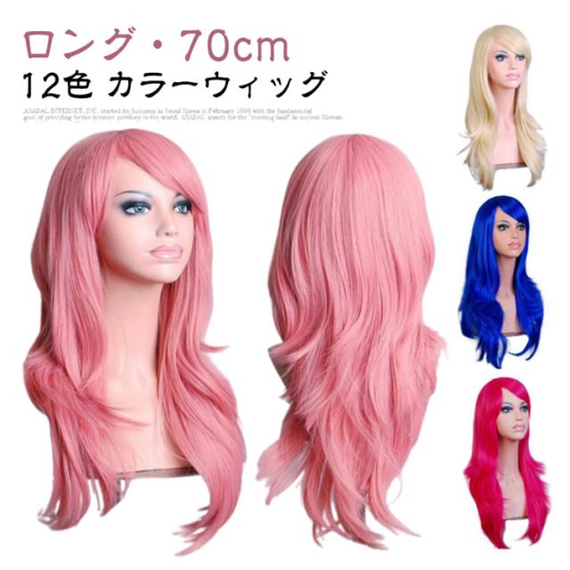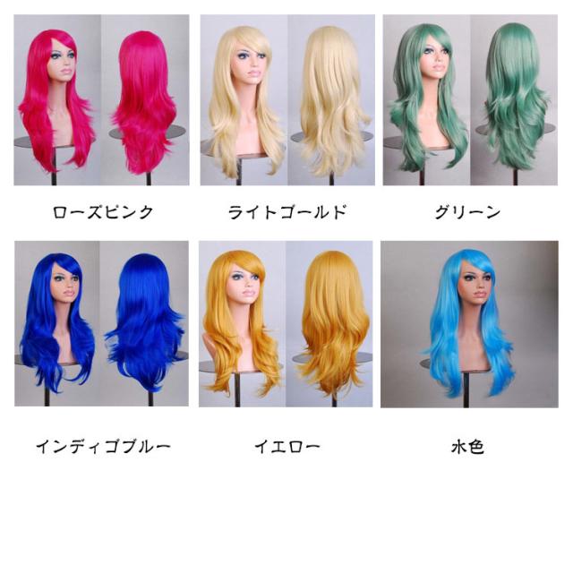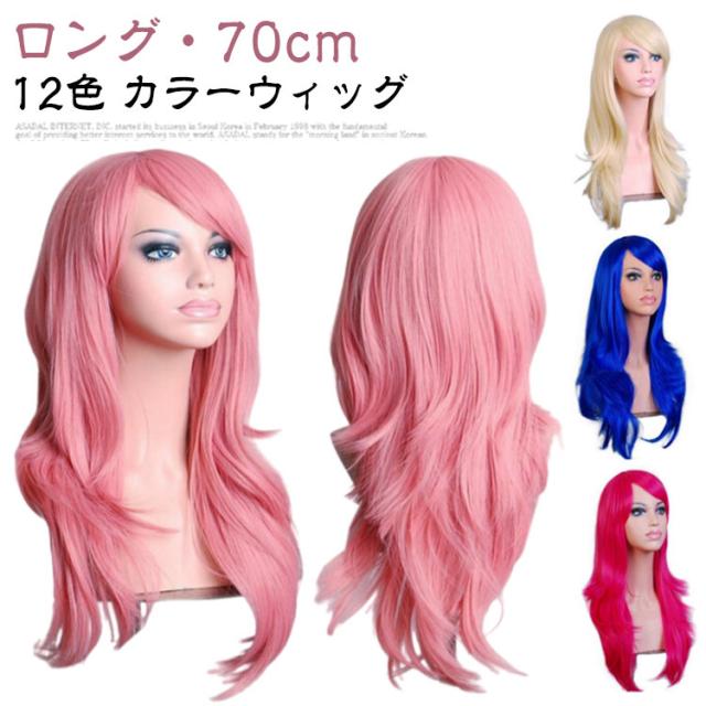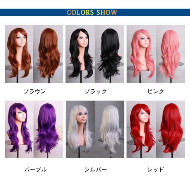 ロング 70cm 巻き ブラック 黒髪 カール ウイッグ コスプレ 耐熱 フルウィッグ メンズ 全頭かつら つけ毛 白髪 カラーウィッグ かつら パープル 紫 ゴールド 金色 ピンク シルバー レッド ブルー レディース カラーウィッグ ハロウィン 仮装 コスチューム
