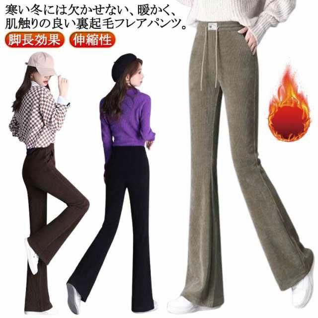 防寒 裏起毛 あったかパンツ あたたかい パンツ フレアパンツ 高身長 秋 暖かい オフィス 長ズボン レディース スタイルアップ 美脚 保温 レギンスパンツ 冬 細見せ ハイウエスト ストレッチ 通勤 脚長効果 黒 ブラック コーヒー ブラウン 送料無料