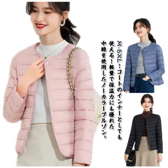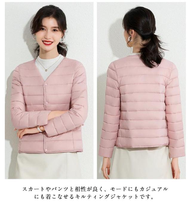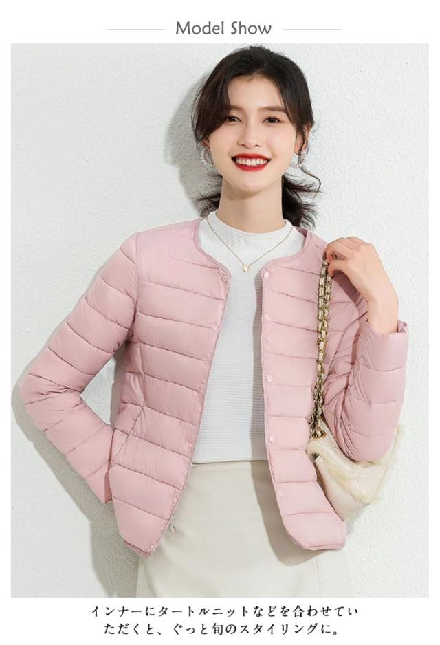 ノーカラーコート レディース 中綿ジャケット 長袖 ノーカラー ダウン風コート キルティングコート ノーカラー ジャケット アウター 中綿コート ショート丈 上着 軽量 インナーダウン インナージャケット きれいめ カジュアル 防寒 暖かい 秋 冬 アウター