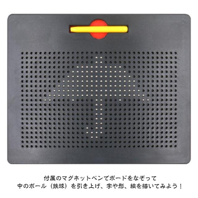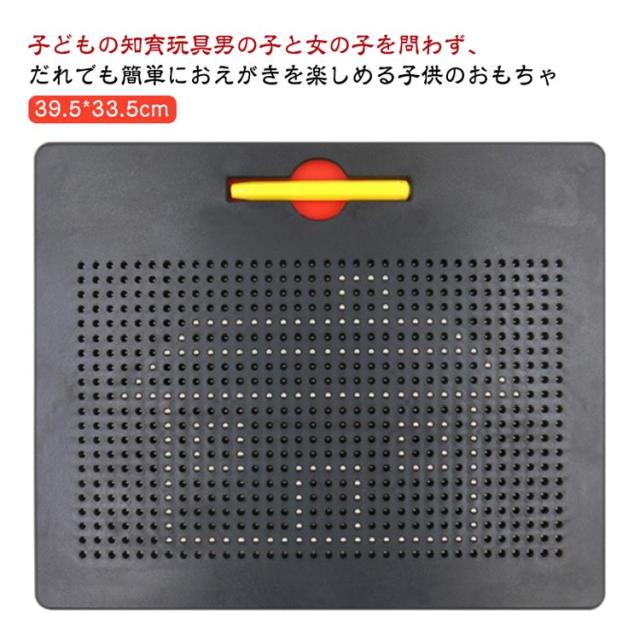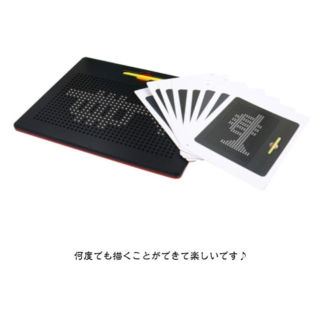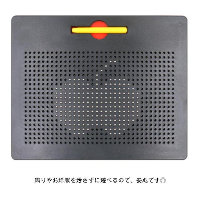 | 子どもの知育玩具男の子と女の子を問わず、だれでも簡単におえがきを楽しめる子供のおもちゃ 想像力を使って絵、形、文字、数字を描くことができます! プラスティック製のボードに、磁石内蔵ペンで遊びます。 付属のマグネットペンでボードをなぞって中のボール(鉄球)を引き上げ、字や形、絵を描いてみよう! 指でボールを軽く押すだけで消せますので、失敗しても気にせず描けます。 遊びの幅も広がり、色々な絵に挑戦できます。 周りやお洋服を汚さずに遊べるので、安心です◎ 何度でも描くことができて楽しいです♪ ぷつぷつと銀色のボールがペンとくっついている音がストレス発散にとても快適! 子供の誕生日、クリスマスのプレゼントやおうち時間などにも最適! | |