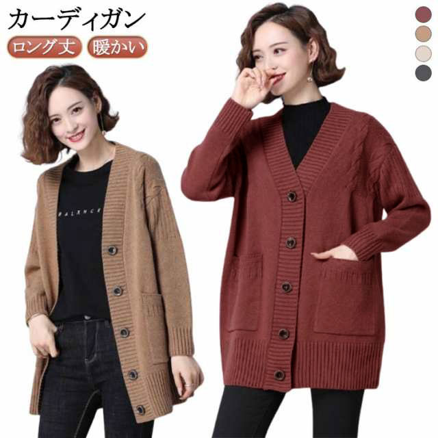 カーディガン ロングカーディガン 送料無料 レディース ニット カーディガン 厚手 ロング丈 ニットカーディガン ポケット付き コーディガン トップス アウター 大きサイズ 30代 40代 50代 送料無料