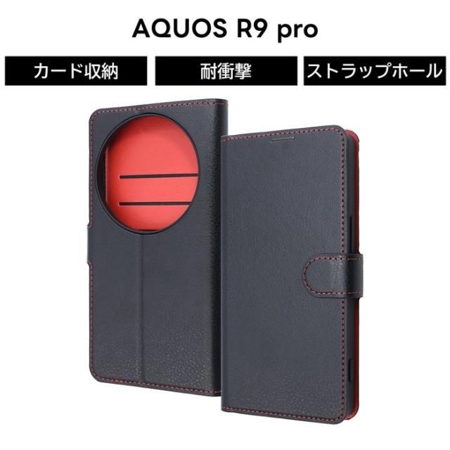 AQUOS R9 pro ケース 手帳型ケース マグネット AQUOSR9pro SH 54E アクオスR9プロ 耐衝撃 レザー ブラック ソフト ハード スマホケース カード収納