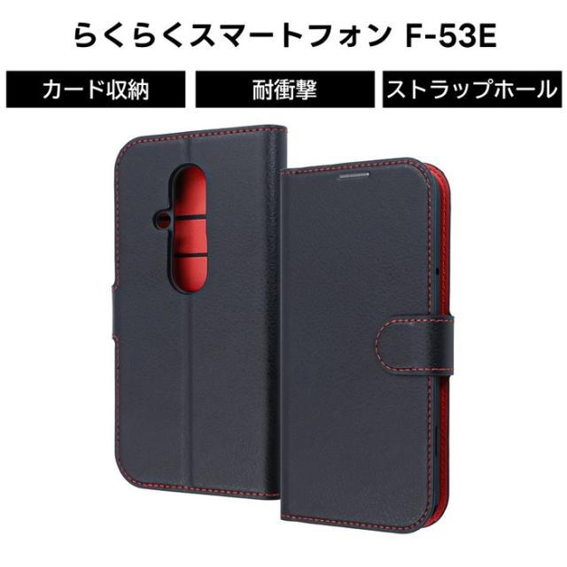 らくらくスマートフォン F 53E ケース 手帳型 マグネット ルーペ シンプル 耐衝撃 レザー ブラック レッド ソフト ハード スマホケース カード収納