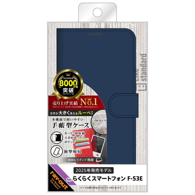 らくらくスマートフォン F 53E ケース 手帳型 マグネット ルーペ シンプル 耐衝撃ケース レザー ネイビー ソフト ハード スマホケース カード収納