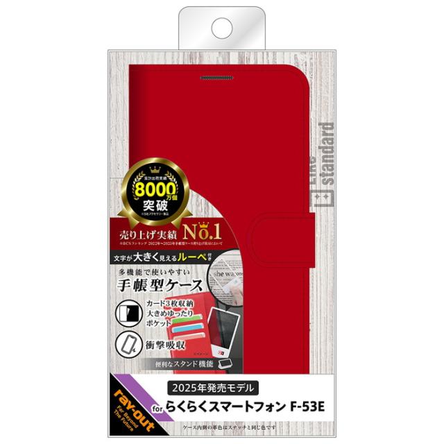 らくらくスマートフォン F 53E ケース 手帳型 マグネット ルーペ シンプル 耐衝撃ケース 手帳 レザー レッド ソフト ハード スマホケース カード収納