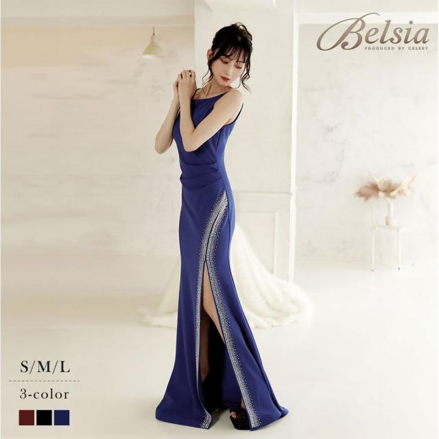 ロングドレス Belsia ラメ スリット オーロラビジュー 華奢魅せ ウエストくびれ キャバ ドレス キャバドレス ロングド