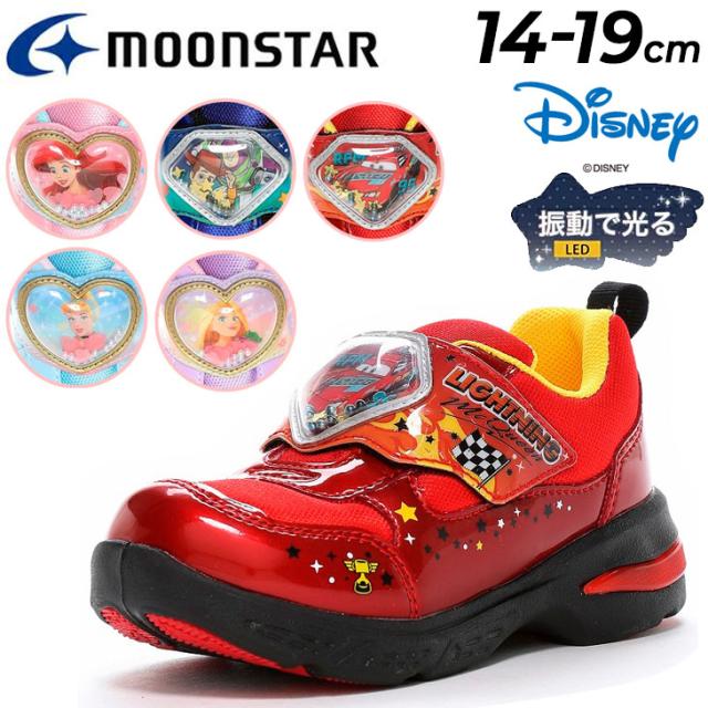 ディズニー 光る靴 LED キッズシューズ 14-19cm 2E 子供靴 Disney アリエル シンデレラ ラプンツェル カーズ マックィーン トイストーリー キャラクター スニーカー 運動靴 シューズ 子ども 男の子 女の子 ブランド ムーンスター moonstar くつ/DN-C1344