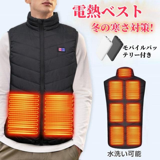 電熱ベスト 発熱ベスト 防寒ベスト モバイルバッテリー付き 電熱ジャケット 電気ベスト ヒーターベスト 9エリア発熱 ヒーターベスト バッテリー給電 5秒速暖 温度調整 水洗い可能 usb加熱 男女兼用 防寒ベスト 加熱服 前後独立
