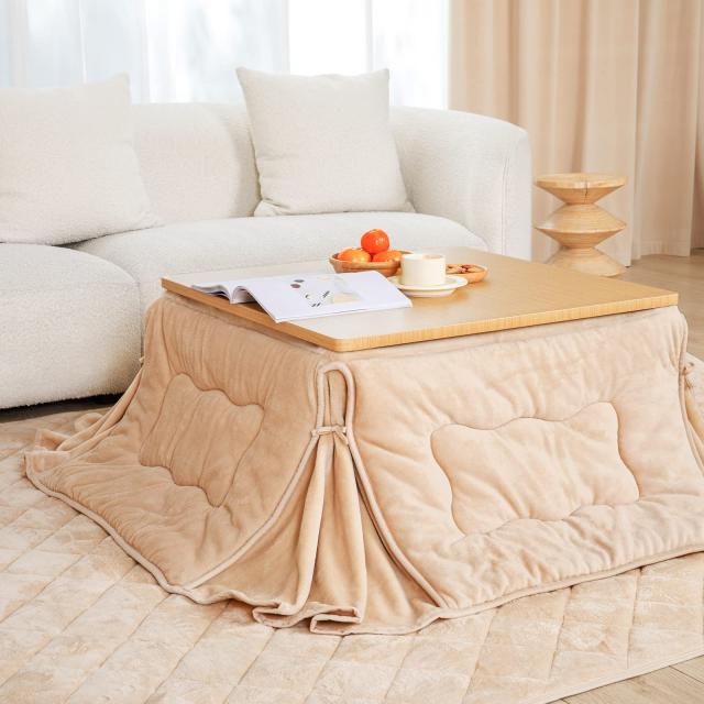 ・【省スペース設計】正方形のこたつ台用の省スペースタイプです。かさばるコーナー部分はヒモで結んで留めておくことができで、布団の四隅が膨らまず、お部屋のスペースを十分に活用できます。省スペースながらもボリューム感をもたせました。省スペースタイプで薄手なので、 折りたたんでもかさばらず、コンパクトに収納できます。天板部の中綿を減らしますが、本体部分の綿を増量しました。天板を乗せたときの安定感をアップ、本体部分のふっくら感もアップ。