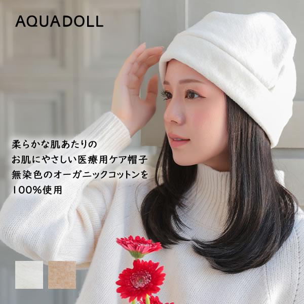 アクアドール オーガニックコットンふんわりあったかワッチ[mdh026] (メール便送料無料) 医療用 抗がん剤 帽子 ぼうし 室内帽子 外出用 就寝用 かわいい 女性 レディース 秋用 冬用 秋 冬 秋冬 防寒 厚手