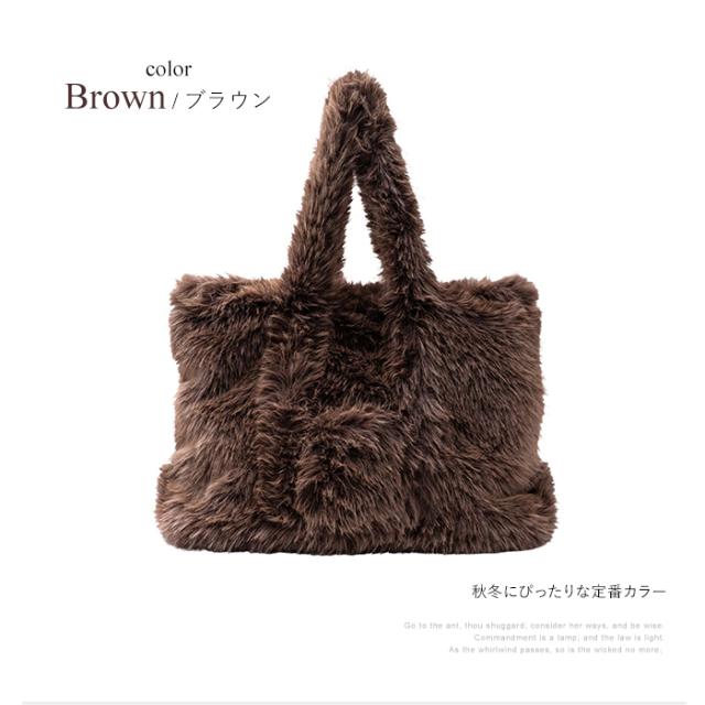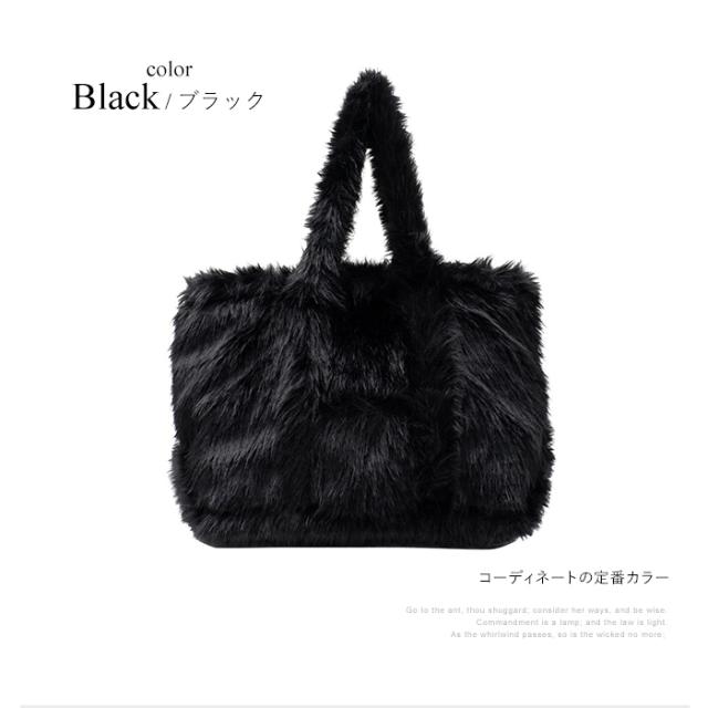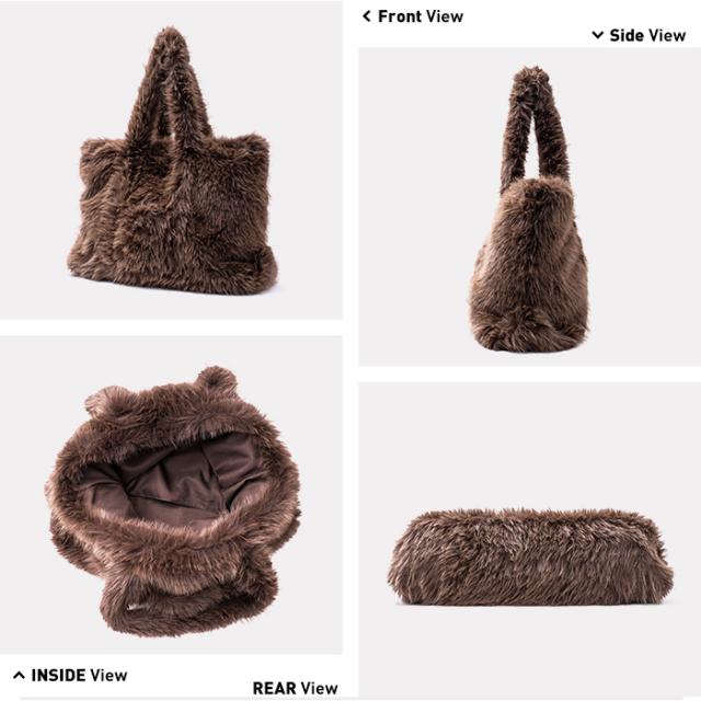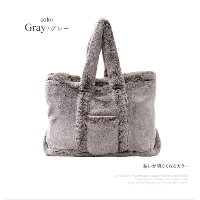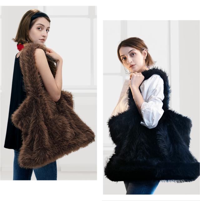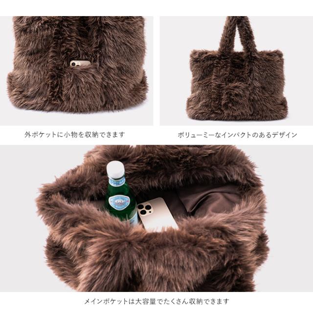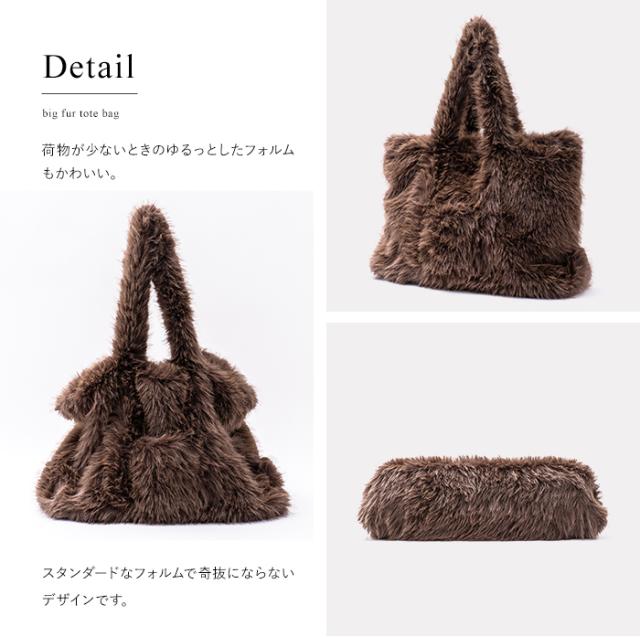 ボリューミーなフェイクファーを活かすために、巨大化させたトートバッグ。