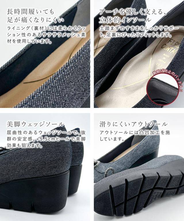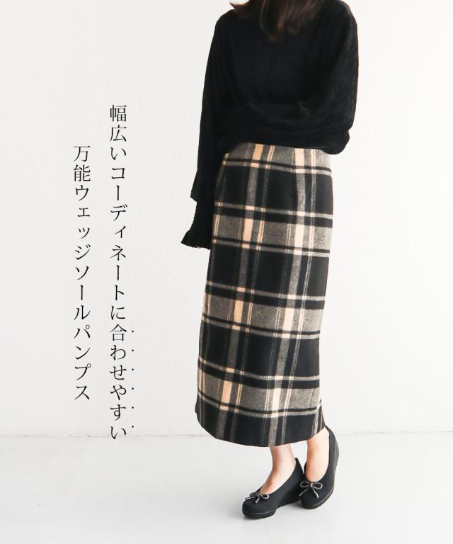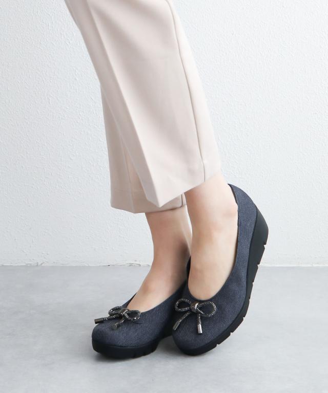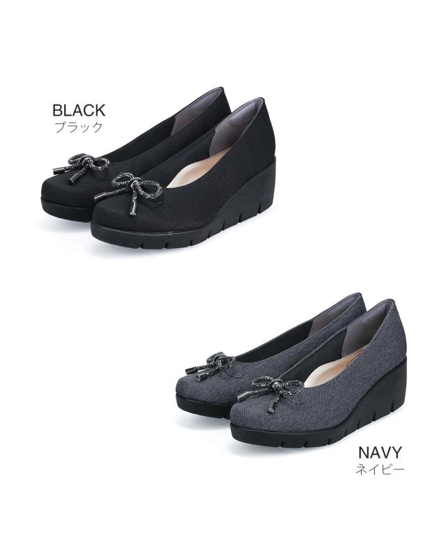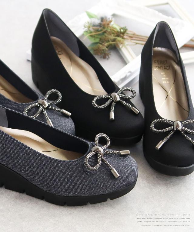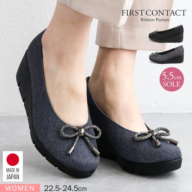 パンプス レディース 厚底 靴 ウェッジソール 歩きやすい 痛くない コンフォートシューズ 小さいサイズ 大きいサイズ ヒール ウエッジソール リボン 日本製 ファーストコンタクト FIRST CONTACT 黒 ブラック 紺 ネイビー 39638