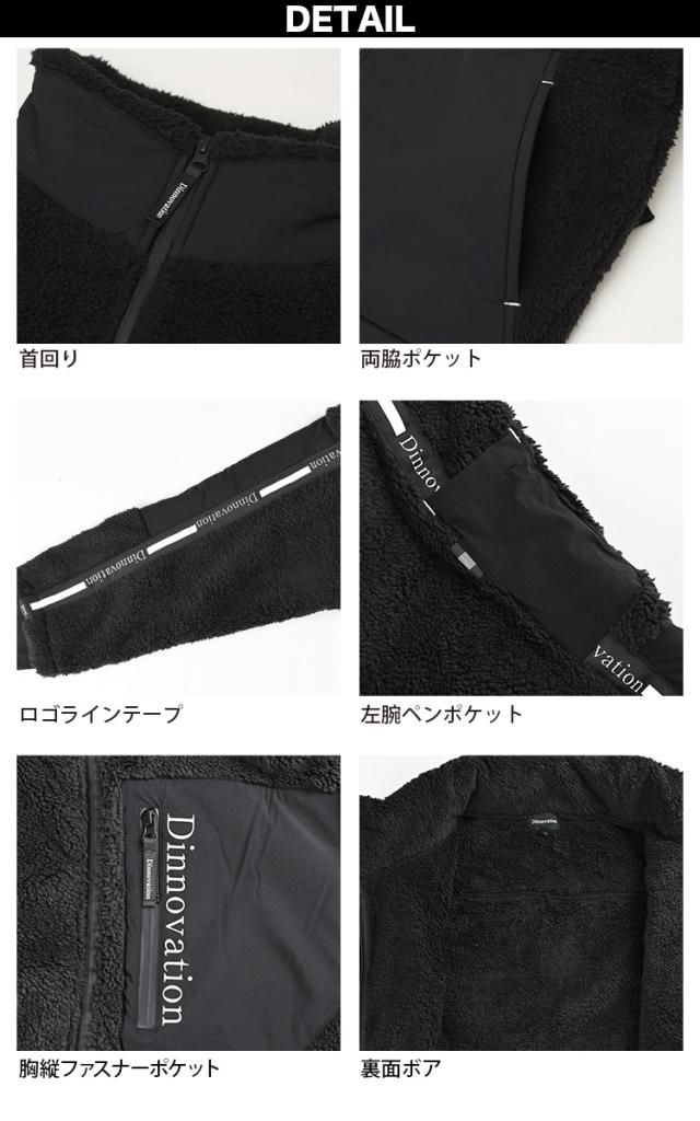 Dinnovation ボアジャケット 24A015EX 長袖 両面ボア 反射素材 ロゴラインテープ 大型ポケット カジュアル かっこいい 軽防寒 防寒着 秋冬 作業服 作業着 メンズ ディノベーション