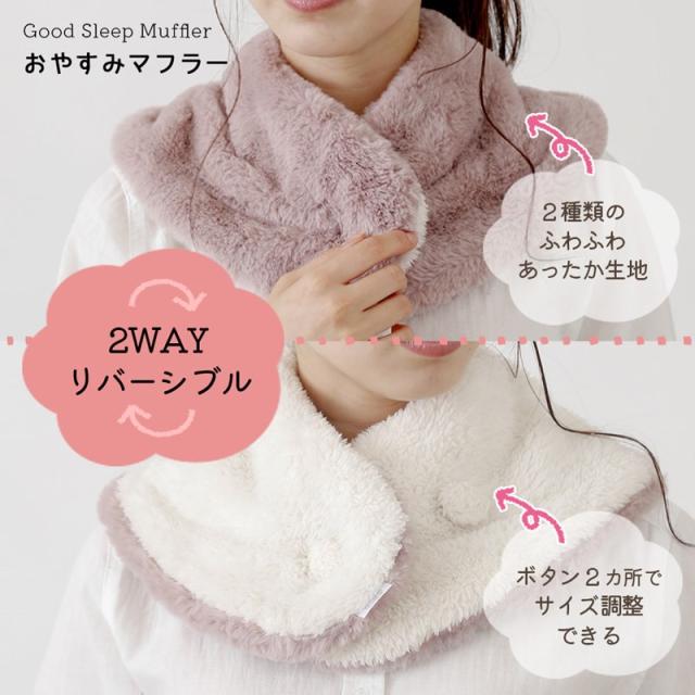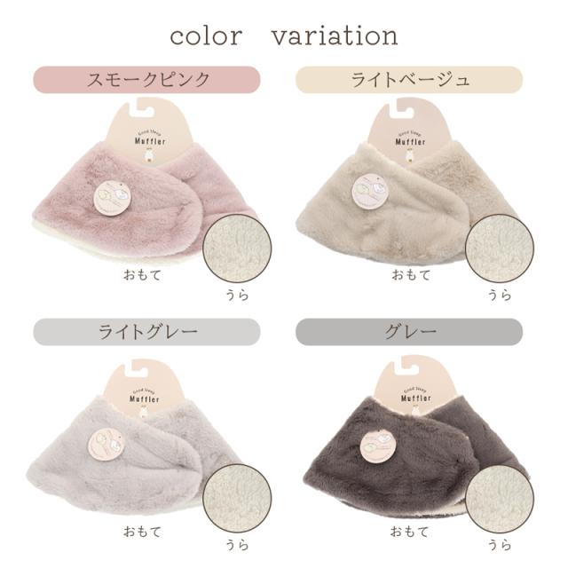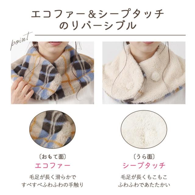 おやすみマフラー マフラー エコファー レディース 襟巻き ネックウォーマー 肩当 あったか 暖かい ルームウェア 防寒 ふわふわ もこもこ 血流促進 温活 ぽか活 血行不良の改善 カントリー ナチュラル ニュアンス リバーシブル 2way マイクロタッチ