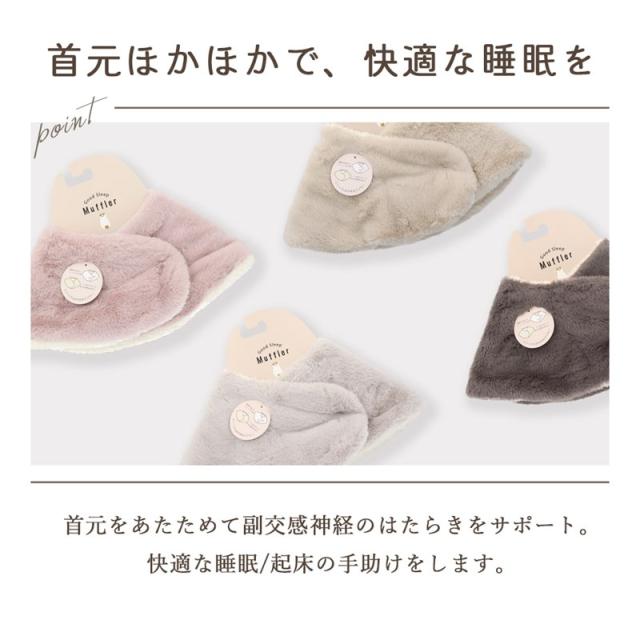 おやすみマフラーは、首周りを温めて副交感神経のはたらきをサポートし、 快適な睡眠起床の手助けをします。