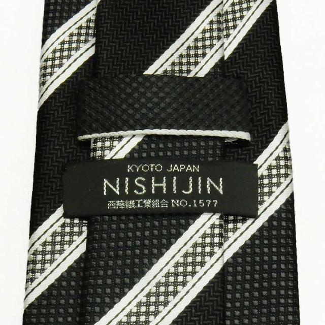 西陣織 モーニング用ネクタイ◇黒×白◇ストライプ◆シルク100%◇日本製◆礼装◆結婚式・披露宴 メール便可 njm05