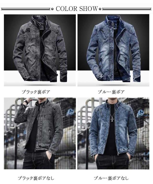 デニムジャケット デニムコート スタンドカラー 秋冬 細身 裏起毛 デニム ボア ジャケット Gジャン 厚手 ヴィンテージ バイクジャケット アウター 春 秋 冬 防寒