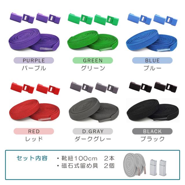 靴紐 結ばない ゴム ほどけない 靴紐ストッパー かわいい スニーカー ほどけない靴紐 靴ひも 黒 白 緑 赤 紫 平紐 おしゃれ 100cm スポーツ 留め具 伸びる マグネット ハイカット ストレッチ 0.8cm幅 2本セット 子供用 カジュアル 通勤 通学 レディース メンズ 男女兼用