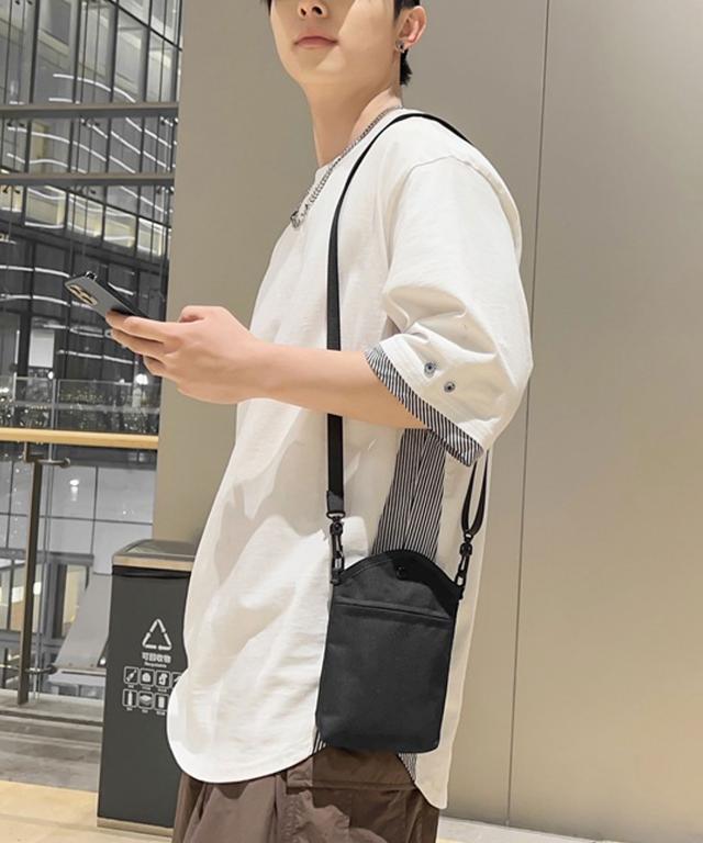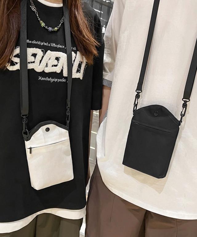 カジュアルバイカラー縦型ショルダーバッグ/スマホポーチ/スマホショルダー。