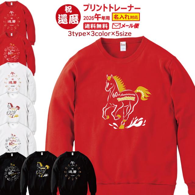 還暦祝い 名入れ 長袖 トレーナー 干支 ラッピング 還暦 tシャツ お祝い プレゼント 名入れ 名前入り 赤 レッド ブラック ホワイト ブルー グレー オリーブ 60歳 誕生日 おしゃれ サプライズ メンズ レディース 男性 女性 父 母 上司 メール便 送料無料