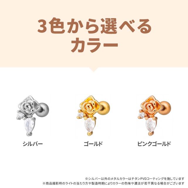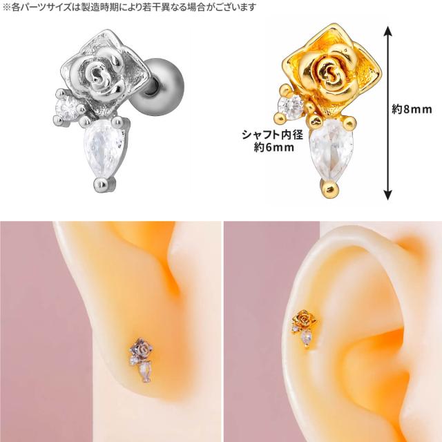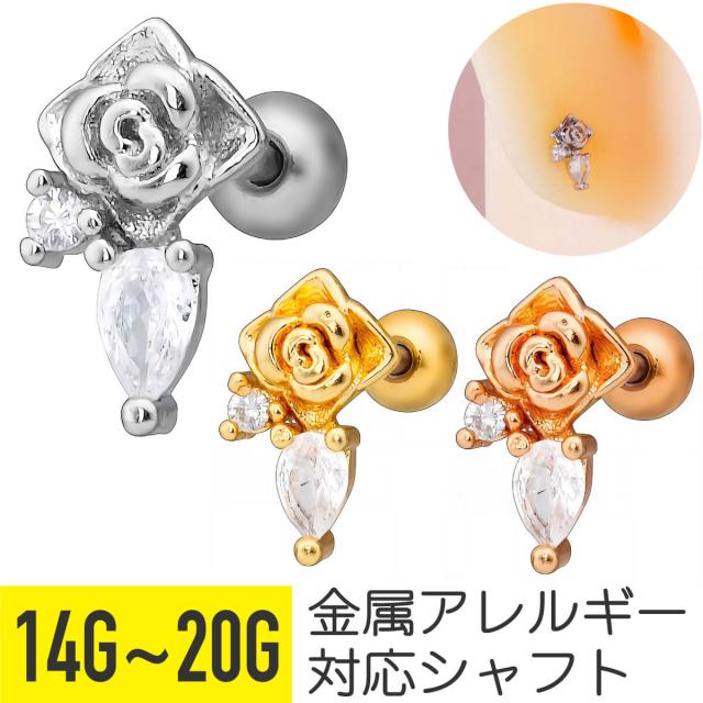 ローズ バラ モチーフ ジュエル ストレートバーベル 14G 16G 18G 20G サージカルステンレス ジルコニア ヘリックス 軟骨 ボディピアス