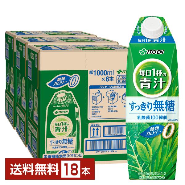 ポイント5倍 栄養機能食品 伊藤園 毎日1杯の青汁 すっきり無糖 1L 1000ml 紙パック 屋根型キャップ付容器 6本×3ケース(18本) 送料無料