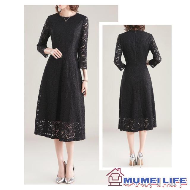 【商品特徴】 ロング丈 ミモレ丈 膝下 七分袖 袖あり 長袖 半袖 きれいめ エレガント カジュアル 大人 上品 体型カバー 細見え 可愛い おしゃれ タイト サックス aライン 総レース 刺繍 花柄 無地